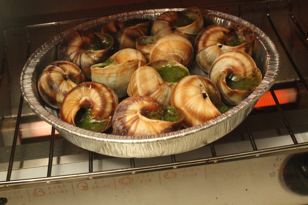 本場フランス産のエスカルゴを輸入いたしました。アルミトレーのままオーブン、トースターで焼いてお召し上がりいただけます。軽い赤ワイン、白ワインなどがエスカルゴには合います。