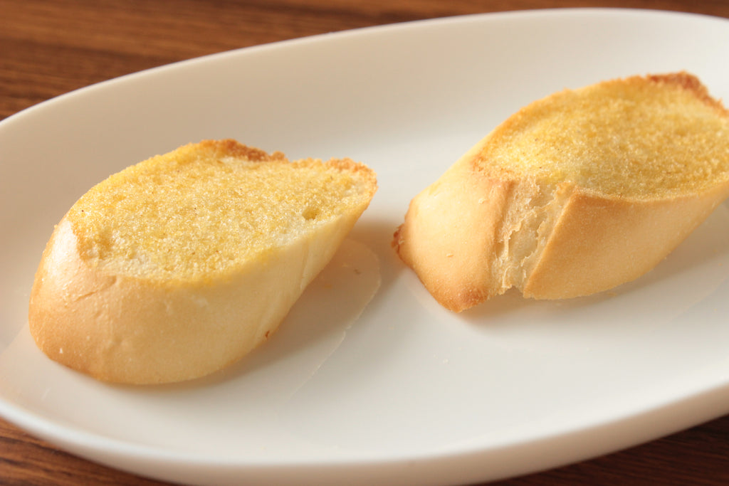 使う分だけ冷凍庫から取り出し、冷凍のままトースター又はオーブンで焼いてお召し上がりください。外はサクサク、中ふわふわに焼き上がり、ガーリックバターがじゅわっと広がります。