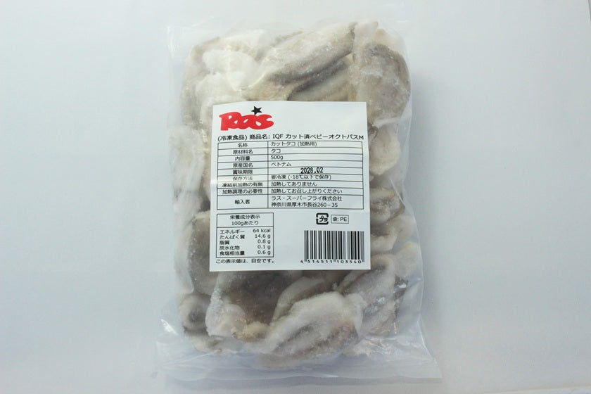 漁港で水揚げされた新鮮なタコをすぐに加工工場へ搬入し急速凍結させている加熱用の冷凍カットタコです。